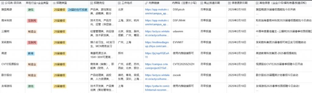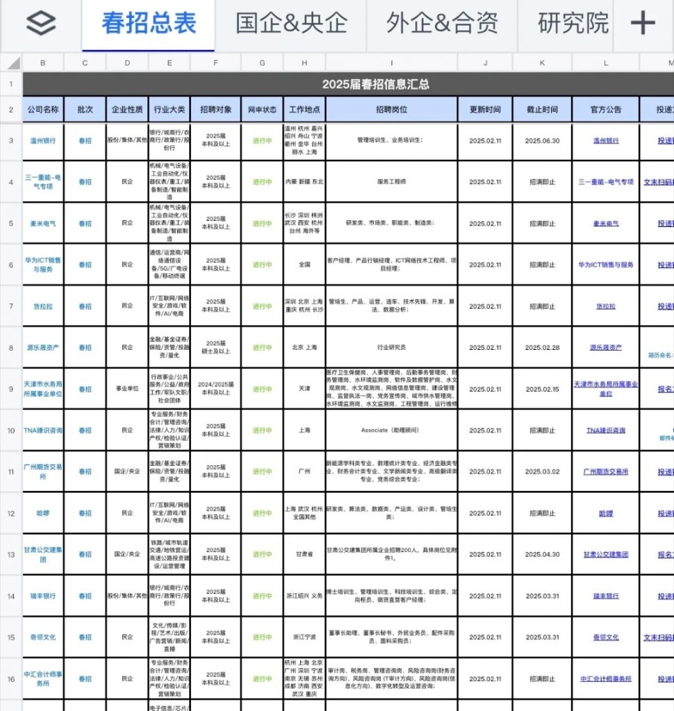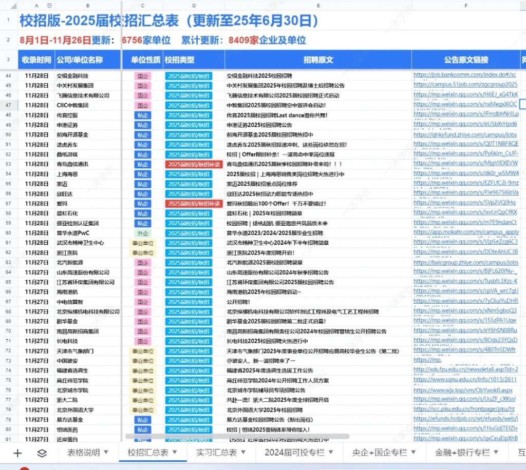 就业无忧,本表含众多企业校招信息岗位汇总,网申信息汇总,大企业含内推码
