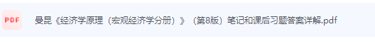 经济学原理(第8版):宏观经济学分册曼昆课后习题答案解析sanhao1个月前更新关注私信1.1W+1268 经济学原理(第8版):宏观经济学分册曼昆课后习题答案解析 经济学原理(第8版):宏观经济学分册 主 编: 曼昆 ISBN: – 出版社: 北京大学出版社 用心服务多年,不敢欺瞒。 购买完之后原界面会出现本地下载字样,遇到问题记得一定要联系我们 微信联系方式QQ联系方式 经济学原理(第8版):宏观经济学分册曼昆课后习题答案解析此内容为付费资源,请付费后查看¥6.6点击支付,办理会员后免费登录购买付费资源THE END答案分类 喜欢就支持一下吧点赞1268 分享QQ空间微博QQ好友海报分享复制链接收藏