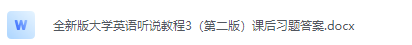 全新版大学英语(第二版)听说教程 第3册王美华课后习题答案解析sanhao2个月前更新关注私信67873021 全新版大学英语(第二版)听说教程 第3册王美华课后习题答案解析 全新版大学英语(第二版)听说教程 第3册 主 编: 王美华 ISBN: 9787544632263 出版社: 上海外语教育出版社 用心服务多年,不敢欺瞒。 购买完之后原界面会出现本地下载字样,遇到问题记得一定要联系我们 微信联系方式QQ联系方式 全新版大学英语(第二版)听说教程 第3册王美华课后习题答案解析此内容为付费资源,请付费后查看¥6.6点击支付,办理会员后免费登录购买付费资源THE END答案分类 喜欢就支持一下吧点赞3021 分享QQ空间微博QQ好友海报分享复制链接收藏