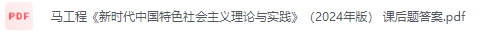 马工程《新时代中国特色社会主义理论与实践》(2024年版) 课后题答案sanhao8个月前更新关注私信87278448 用心服务多年,不敢欺瞒。购买完之后原界面会出现本地下载字样,遇到问题记得一定要联系我们 马工程《新时代中国特色社会主义理论与实践》(2024年版) 课后题答案此内容为付费资源,请付费后查看¥6.6点击支付,办理会员后免费登录购买付费资源THE END答案分类 喜欢就支持一下吧点赞8448 分享QQ空间微博QQ好友海报分享复制链接收藏