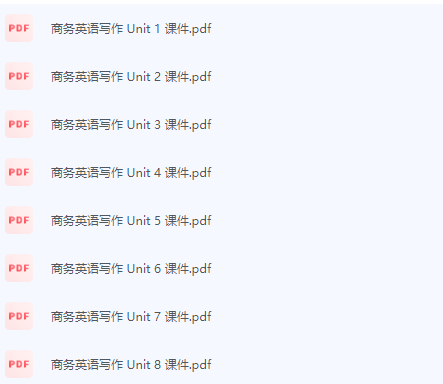 新世纪商务英语专业本科系列教材(第二版)商务英语写作刘怡课后习题答案解析sanhao1个月前更新关注私信21613634 新世纪商务英语专业本科系列教材(第二版)商务英语写作刘怡课后习题答案解析 新世纪商务英语专业本科系列教材(第二版)商务英语写作 主 编: 刘怡 ISBN: 9787544641890 出版社: 上海外语教育出版社 用心服务多年,不敢欺瞒。 购买完之后原界面会出现本地下载字样,遇到问题记得一定要联系我们 微信联系方式QQ联系方式 新世纪商务英语专业本科系列教材(第二版)商务英语写作刘怡课后习题答案解析此内容为付费资源,请付费后查看¥6.6点击支付,办理会员后免费登录购买付费资源THE END答案分类 喜欢就支持一下吧点赞3634 分享QQ空间微博QQ好友海报分享复制链接收藏