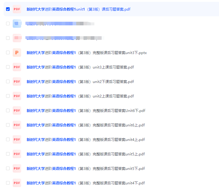 新时代大学进阶英语综合教程1(第3版)课后习题答案解析sanhao1年前更新关注私信1.4W+4884 新时代大学进阶英语综合教程1(第3版)课后习题答案解析 全部单元都有 用心服务多年,不敢欺瞒。 购买完之后原界面会出现本地下载字样,遇到问题记得一定要联系我们 微信联系方式QQ联系方式 新时代大学进阶英语综合教程1(第3版)课后习题答案解析此内容为付费资源,请付费后查看¥6.6点击支付,办理会员后免费登录购买付费资源THE END答案分类 喜欢就支持一下吧点赞4884 分享QQ空间微博QQ好友海报分享复制链接收藏1