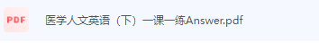 医学人文英语(下)一课一练Answer课后习题答案sanhao1年前更新关注私信2W+4715 医学人文英语(下)一课一练Answer课后习题答案 用心服务多年,不敢欺瞒。 购买完之后原界面会出现本地下载字样,遇到问题记得一定要联系我们 微信联系方式QQ联系方式 医学人文英语(下)一课一练Answer课后习题答案此内容为付费资源,请付费后查看¥6.6点击支付,办理会员后免费登录购买付费资源THE END答案分类 喜欢就支持一下吧点赞4715 分享QQ空间微博QQ好友海报分享复制链接收藏