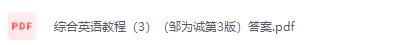 综合英语教程3(第三版)邹为诚课后习题答案解析sanhao2个月前更新关注私信16804524 综合英语教程 3 (第三版)邹为诚课后习题答案解析 综合英语教程 3 (第三版) 主 编: 邹为诚 ISBN: 9787040320046 出版社: 高等教育出版社 用心服务多年,不敢欺瞒。 购买完之后原界面会出现本地下载字样,遇到问题记得一定要联系我们 微信联系方式QQ联系方式 综合英语教程3(第三版)邹为诚课后习题答案解析此内容为付费资源,请付费后查看¥6.6点击支付,办理会员后免费登录购买付费资源THE END答案分类 喜欢就支持一下吧点赞4524 分享QQ空间微博QQ好友海报分享复制链接收藏