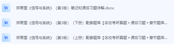 信号与系统第3版 上下册郑君里课后习题答案解析sanhao2个月前更新关注私信49743664 信号与系统第3版 上下册郑君里课后习题答案解析 信号与系统第3版 上下册 主 编: 郑君里 ISBN: 9787040315196 出版社: 高等教育出版社 用心服务多年,不敢欺瞒。 购买完之后原界面会出现本地下载字样,遇到问题记得一定要联系我们 微信联系方式QQ联系方式 信号与系统第3版 上下册郑君里课后习题答案解析此内容为付费资源,请付费后查看¥6.6点击支付,办理会员后免费登录购买付费资源THE END答案分类 喜欢就支持一下吧点赞3664 分享QQ空间微博QQ好友海报分享复制链接收藏