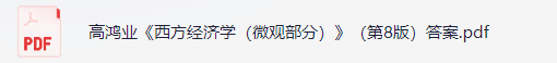 西方经济学微观部分第八8版高鸿业课后习题答案解析sanhao1年前更新关注私信1.1W+2636 西方经济学(微观部分·第八版) 主 编: 高鸿业 ISBN: 9787300294995 出版社: 中国人民大学出版社 用心服务多年,不敢欺瞒。 购买完之后原界面会出现本地下载字样,遇到问题记得一定要联系我们 微信联系方式QQ联系方式 西方经济学微观部分第八8版高鸿业课后习题答案解析此内容为付费资源,请付费后查看¥6.6点击支付,办理会员后免费登录购买付费资源THE END答案分类 喜欢就支持一下吧点赞2636 分享QQ空间微博QQ好友海报分享复制链接收藏