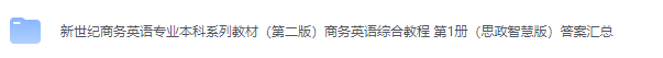 新世纪商务英语综合教程1智慧版答案解析sanhao1年前更新关注私信1.4W+3367 新世纪商务英语专业本科系列教材(第二版)商务英语综合教程 第1册(思政智慧版)答案汇总 用心服务多年,不敢欺瞒。 购买完之后原界面会出现本地下载字样,遇到问题记得一定要联系我们 微信联系方式QQ联系方式 新世纪商务英语综合教程1智慧版答案解析此内容为付费资源,请付费后查看会员专属资源点击支付,办理会员后免费您暂无购买权限,请先开通会员开通会员付费资源THE END答案分类 喜欢就支持一下吧点赞3367 分享QQ空间微博QQ好友海报分享复制链接收藏