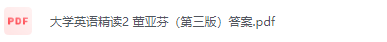 大学英语精读第三版第2册董亚芬 翟象俊课后习题答案解析sanhao2个月前更新关注私信1.8W+3363 大学英语精读第三版第2册董亚芬 翟象俊课后习题答案解析 大学英语 精读 第三版 第2册 主 编: 董亚芬 翟象俊 ISBN: 9787544621717 出版社: 上海外语教育出版社 用心服务多年,不敢欺瞒。 购买完之后原界面会出现本地下载字样,遇到问题记得一定要联系我们 微信联系方式QQ联系方式 大学英语精读第三版第2册董亚芬 翟象俊课后习题答案解析此内容为付费资源,请付费后查看¥6.6点击支付,办理会员后免费登录购买付费资源THE END答案分类 喜欢就支持一下吧点赞3363 分享QQ空间微博QQ好友海报分享复制链接收藏