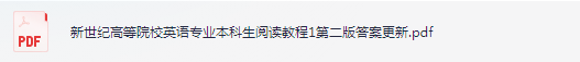 新世纪高等院校英语专业本科生阅读教程1第二版答案sanhao12个月前更新关注私信2W+1490 新世纪高等院校英语专业本科生阅读教程1第二版答案 用心服务多年,不敢欺瞒。 购买完之后原界面会出现本地下载字样,遇到问题记得一定要联系我们 微信联系方式QQ联系方式 新世纪高等院校英语专业本科生阅读教程1第二版答案此内容为付费资源,请付费后查看¥6.6点击支付,办理会员后免费登录购买付费资源THE END答案分类 喜欢就支持一下吧点赞1490 分享QQ空间微博QQ好友海报分享复制链接收藏